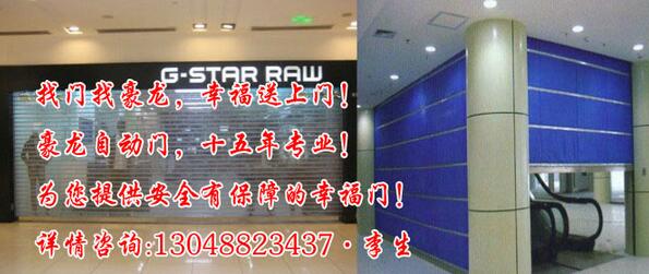 马达得到一定运行电流后做正向运行,将动力传给同步带,再由同步带将动力传给吊具系统使门扇开启;驱动器每年至少要加注一次润滑脂,链条应经常加注润滑油,并检查各部件磨损情况,磨损严重的机件要及时维修或更换。当门下降经过原点时所有内部参数将进行初始化,以消除编码器的积累误差和由于热胀冷缩引起的门帘长度变化造成的定位误差。初始化以后只要不断电就不必再找原点,门体每次经过原点时都会自动修正误差。门扇开启后由控制器作出判断,如需关门,通知马达作反向运动,关闭门扇。
